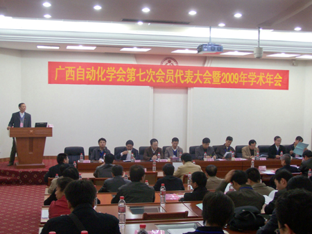 12月5号至6号我学会第七届会员代表大会暨2009年学术年会在柳州召开。来自各理事单位的代表共70余人出席了会议。会议的承办单位是广西工学院和柳州市自动化科学研究所。会议在广西工学院第四教学楼一楼国际学术会议报告厅举行。5号上午,代表报到。5号下午会员代表大会开幕,首先由第六届理事会理事长卢子广致开幕词,接着区科技厅、广西工学院、柳州市科技局、柳州市科协和柳州市自动化科学研究所的领导也分别致辞。广西科学技术协会同时也给大会发来了贺电。接着卢子广理事长作第六届理事会工作报告,何小阳秘书长作第六届理事会财务报告。会议通过举手表决的方式通过了以上两个报告。会议通过无记名投票的方式选举产生了第七届理事会理事共47人。会议还宣读了关于授予韦秉振等15位同志荣誉理事称号的决定,决定授予韦秉振、吕祖沛、刘瑞华、朱成开、宋春宁、杭乃善、林忠岳、赵肃聪、张少光、徐刚、莫修、龚仁喜、梁京章、廖宏彬、谭永红等15位同志荣誉理事的称号。